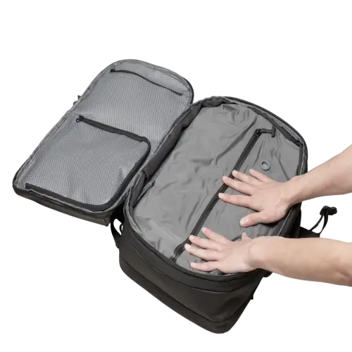 Compress clothing flat inside the main compartment so you instantly save space and pack like a suitcase.
